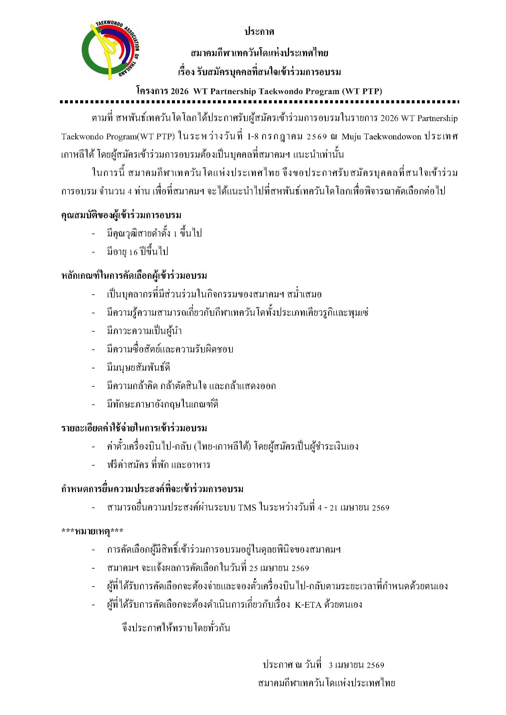 ©1978-2025 สมาคมกีฬาเทควันโดแห่งประเทศไทย